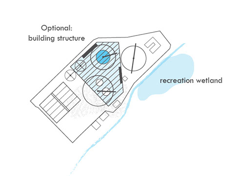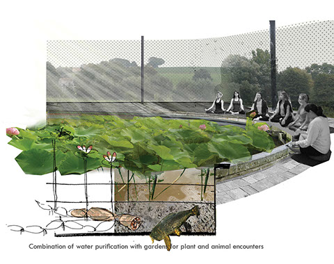Proposed is the creation of innovative sewage-cleaning infrastructures as unique places that physically and emotionally (re)connect people, water cycle, and sewage. Introducing a holistic vision, approach and process, following water as metaphoric model, story and experience, we will design multi-duty building/landscape units as PERFORMATIVE SYSTEM and TRANSFORMATIVE EXPERIENCE, demonstrating how INTEGRATION OF PROCESS/ FUNCTION/EXPERIENCE furthers sustainability, reduces wastefulness, improves sense of engagement and urban quality of life. We propose 2 pilot projects, each with different model character as best-practice examples for multi-functional water- purifying infrastructures. Our process will be transdisciplinary, participatory, and creative, combining landscape, architecture, specialty/eco-engineering and environmental art/events.
