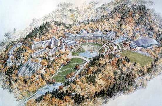 Following Korean cultural tradition and symbolic, all buildings are placed at half-slope. This allows for both erosion control and preservation of watershed, rice paddies and terraced land forms. A curved, sky-lighted architectural street links the main administration building with various other buildings opening up to gardens and natural landscape between them.